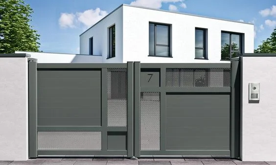 Best gate designs in india: Iron gates can be used as contemporary gates besides main door to add extra security to home. A wide variety of modern house gate designs options are available to you, such as polycarbonate, acrylic. What's great about composite is you can get it to mimic so many materials and the potential for colors, style, etc. A modern grey gate aluminum portal with blades suburbs house street.